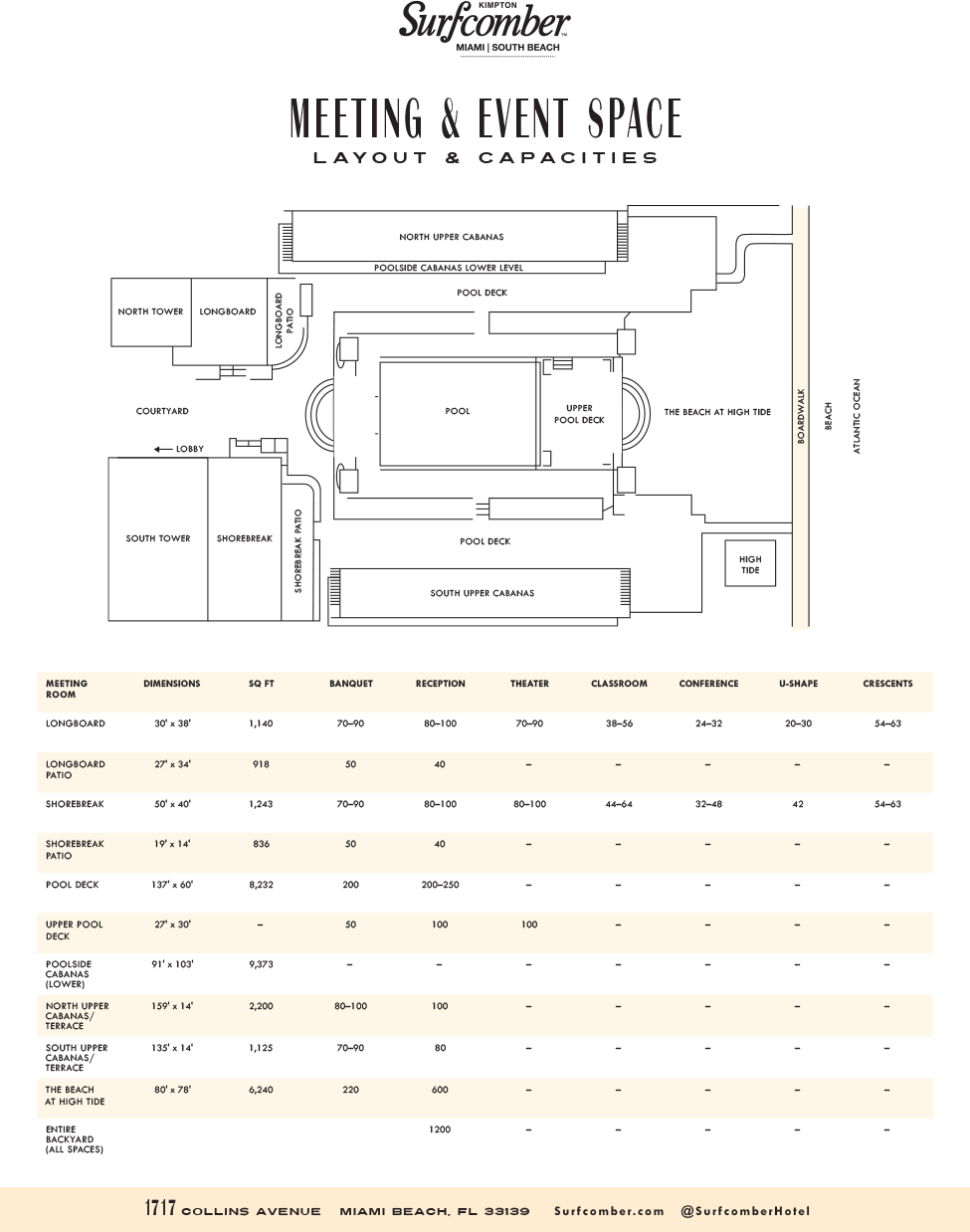 | Shorebreak Patio | 19' x 14' | 836' | 50 | 40 | - | - | - | - | - | |